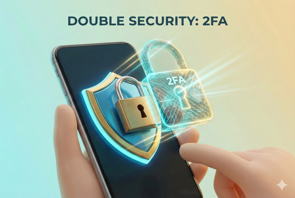 2. El Doble Cerrojo (2FA): Tener solo contraseña es como cerrar la puerta sin llave. Activa siempre el «Segundo Factor de Autenticación» (2FA). Es como ponerle un cerrojo extra de acero a tu puerta. Aunque adivinen tu contraseña, sin ese código extra, no entran.